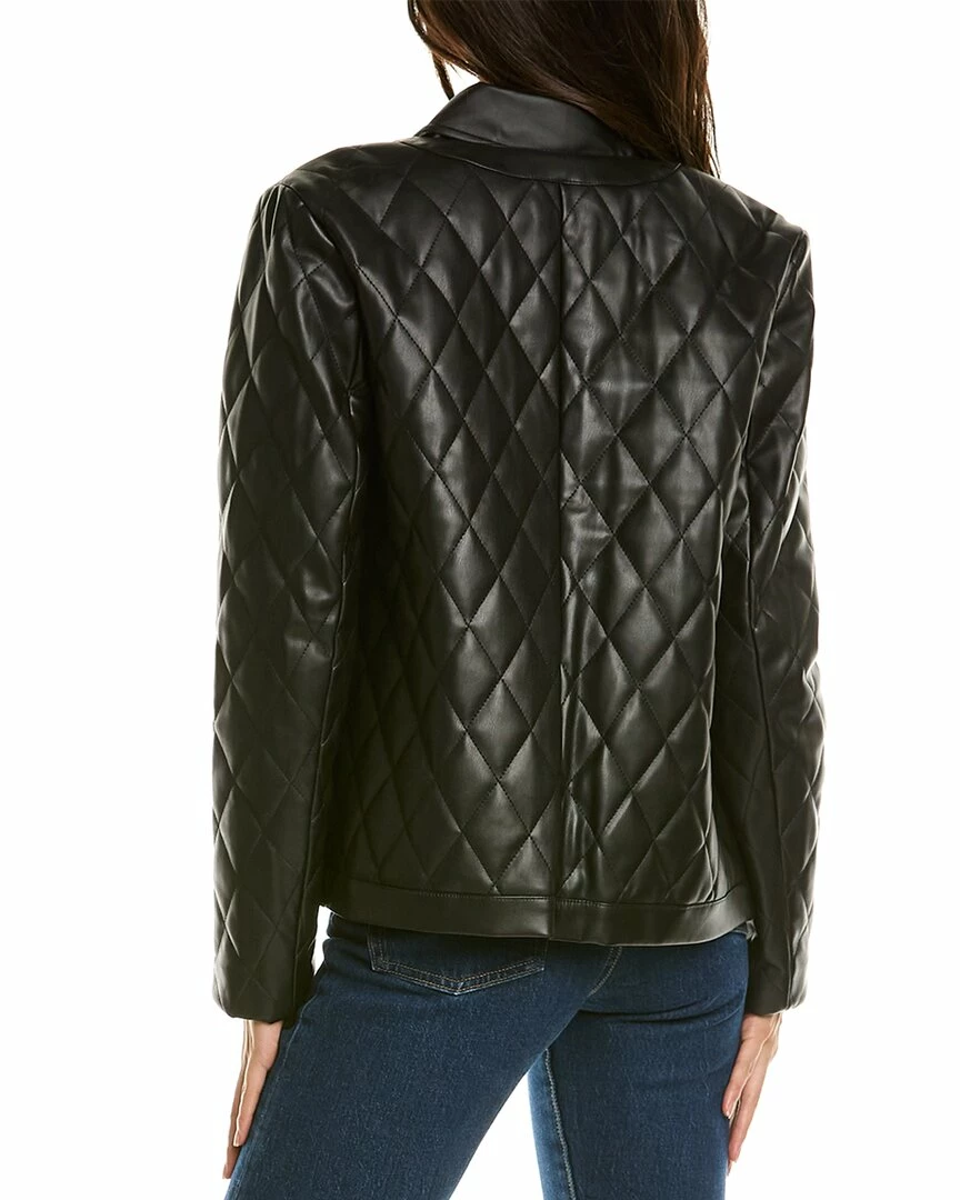 - Collarless Jacket In Anne Black With Quilted Design, Faux Chest Pockets, And Dual Front Patch Pockets