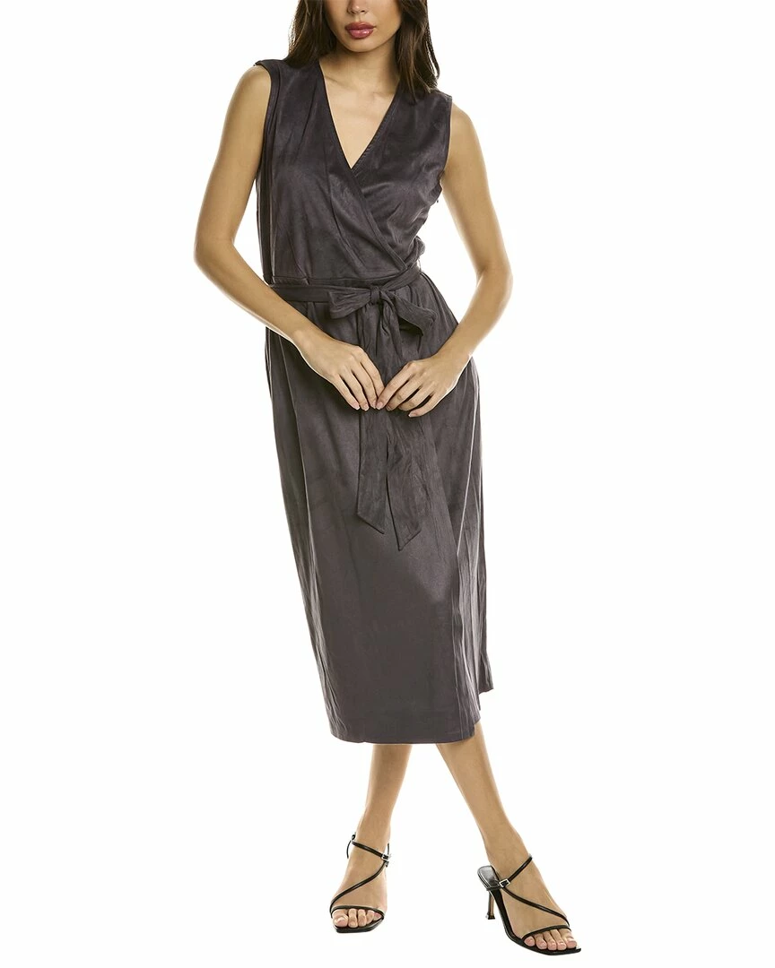 - Faux Wrap Dress In Night Fall With Ultra Faux Suede And Tie Belt At Waist