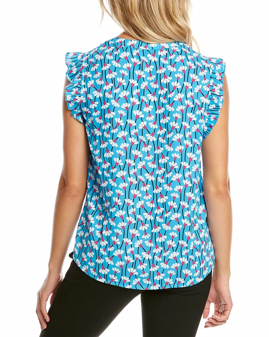 - Flutter Sleeve Top In Tropical Blue With Split Neck And Ruffled Cuffs