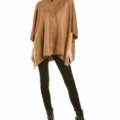 - Mock Neck Poncho In Vicuna With Mixed Rib Neckline And High-Low Hem