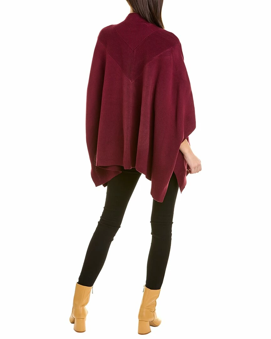 - Mock Neck Poncho In Chianti With Mixed Rib Neckline And High-Low Hem