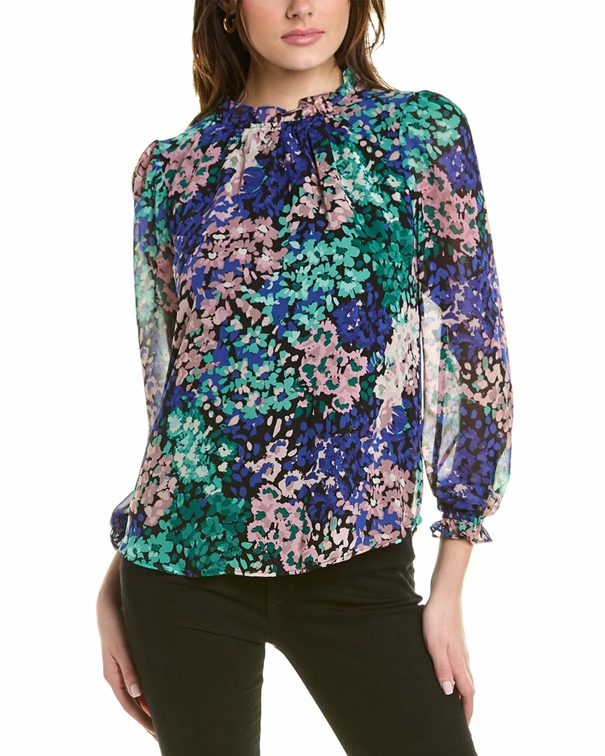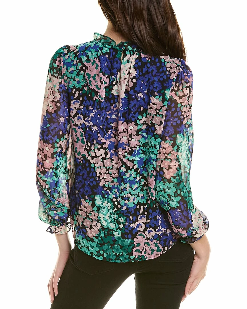 - Printed Chiffon Top In Anne Black Multicolor With Ruffle Trim And Elasticized Cuffs
