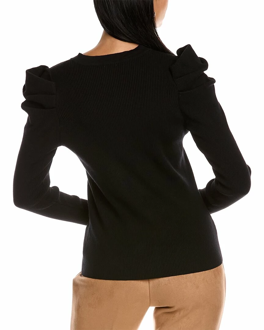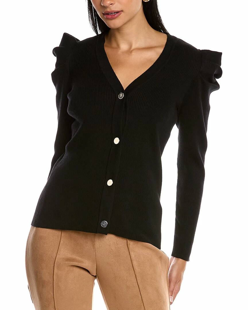 - Puff Sleeve Cardigan In Black With Ribbed Design And Pleated Shoulders