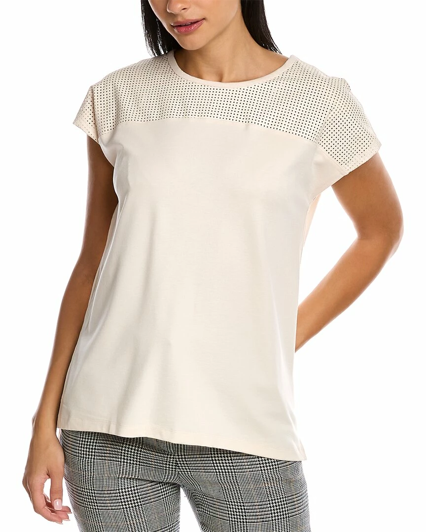 - Serenity Dolman T-Shirt In Anne White With Perforated Faux Leather Front Yoke And High-Low Hem