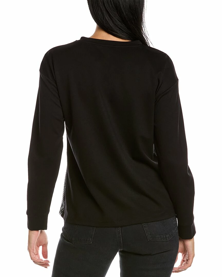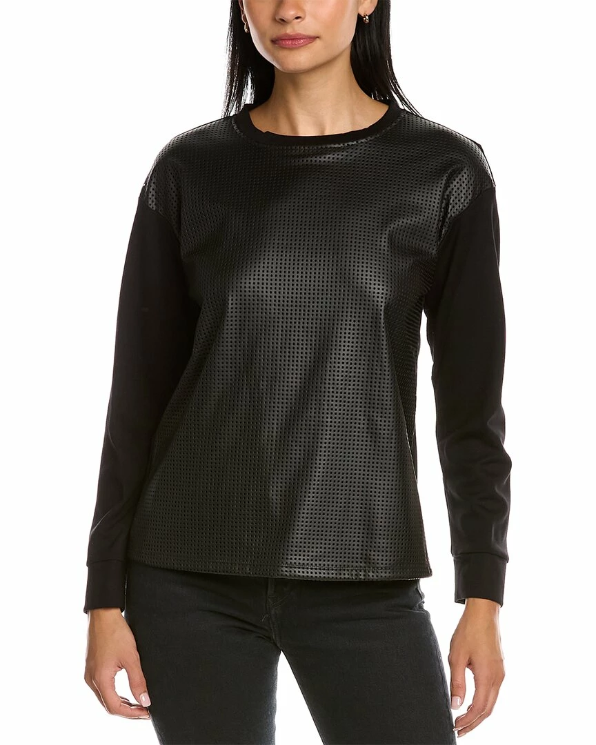 - Serenity Top In Black With Perforated Faux Leather Front And Dropped-Shoulder Sleeves