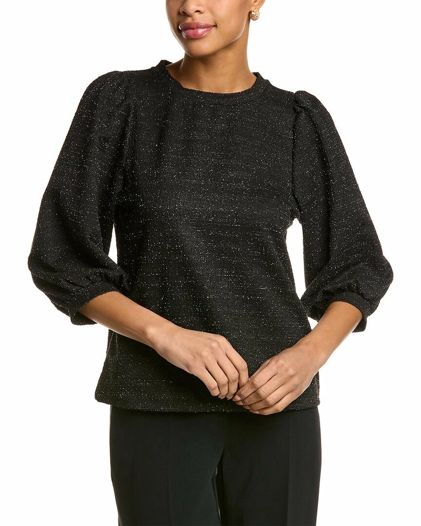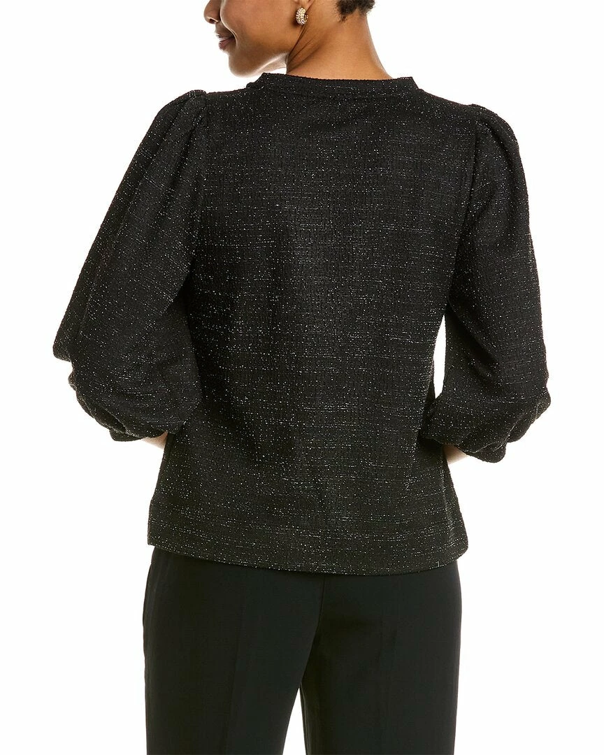 - Shimmer Tweed Top In Black With 3/4-Length Balloon Sleeves