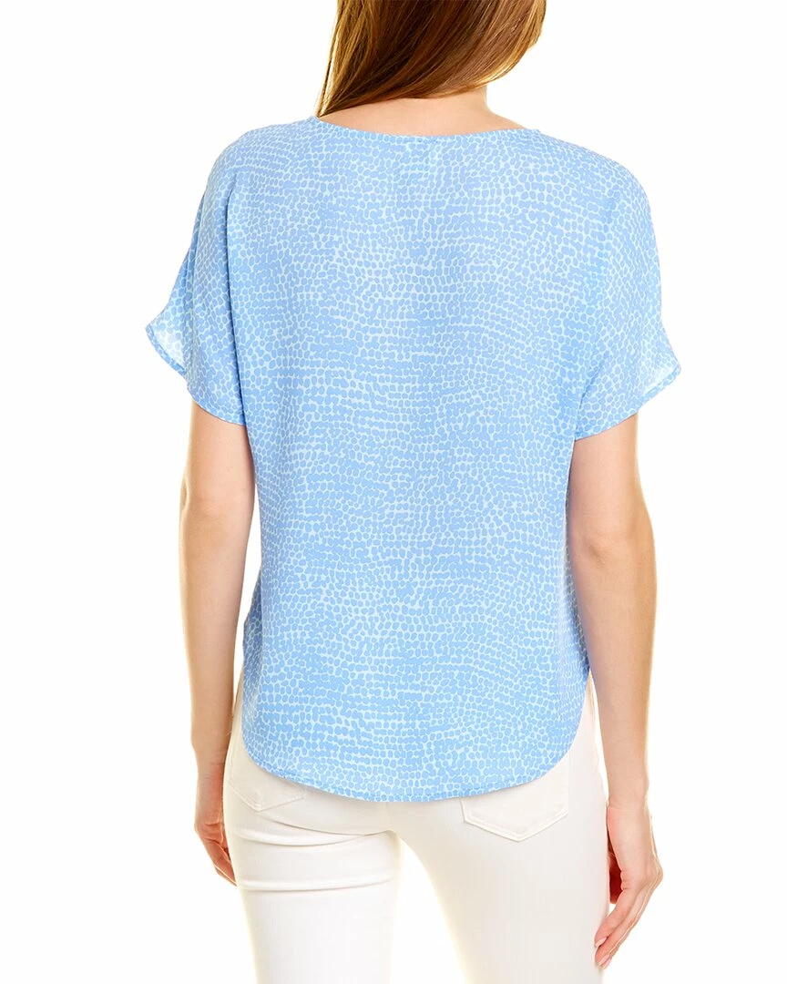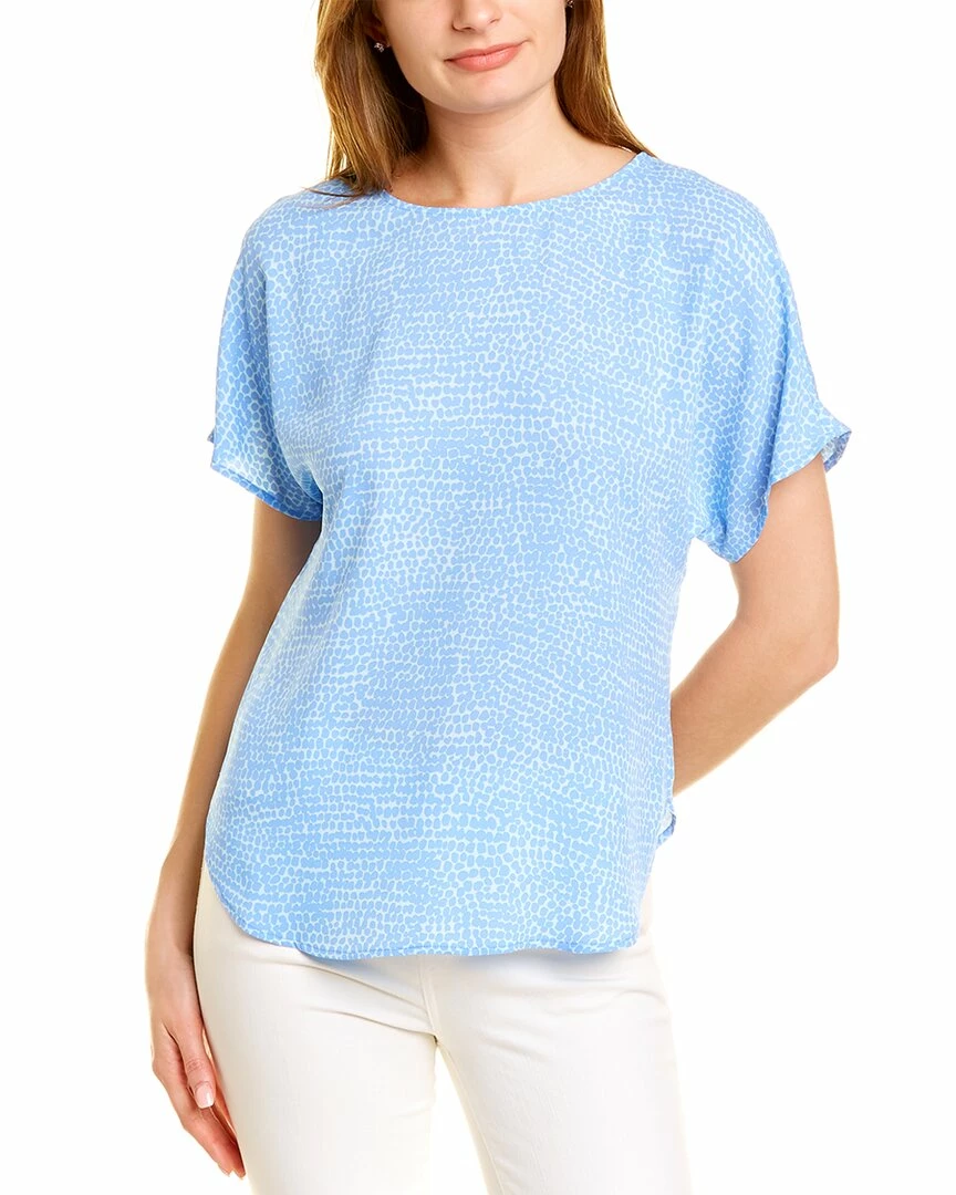 - Short Sleeve Bateau Neck Blouse In Ocean Sky & Blue Lily With Dropped-Shoulder Sleeves And Rounded Hem