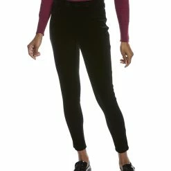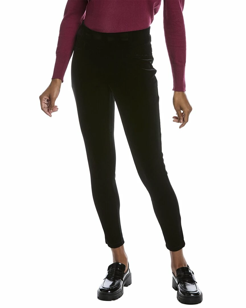 - Velour Slim Ankle Pant In Black With Elasticized Waistband And Two Front Pockets