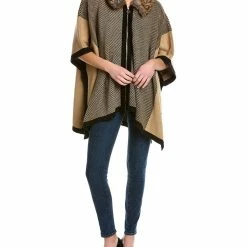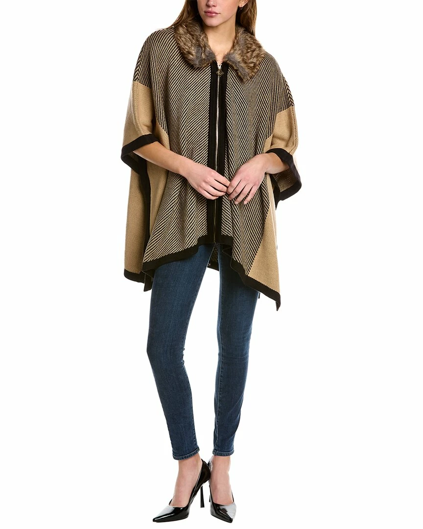 - Zip Front Poncho In Light Coffee & Anne Black With Removable Faux Fur Collar